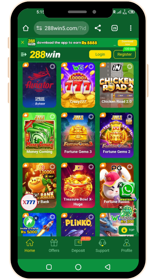 288 Win Game is a modern casino-style mobile app that combines entertainment with real earning opportunities. It offers multiple games, safe transactions, and attractive bonuses for Pakistani users.