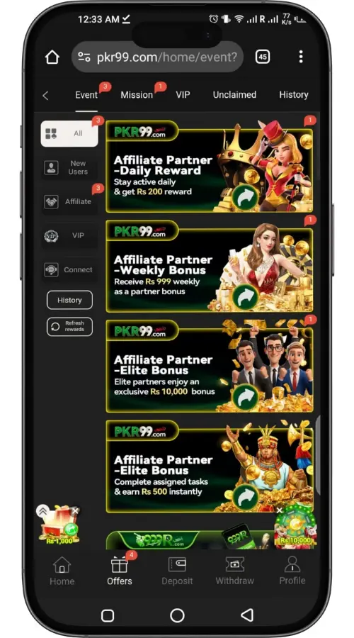 Withdrawals are processed quickly, usually within a few minutes, ensuring that players receive their earned PKR without any delay.